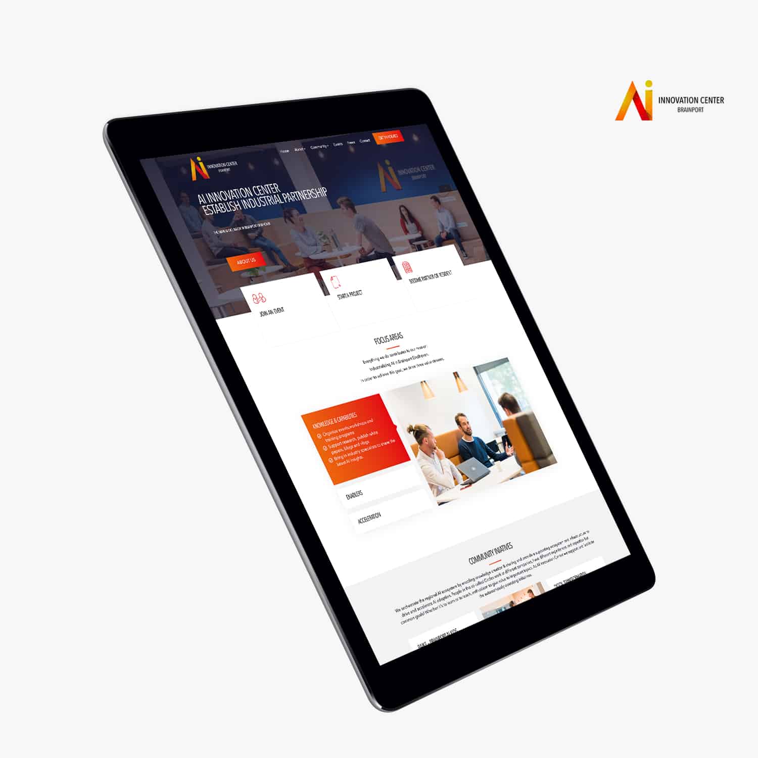 Het AI Innovation Center is onderdeel van de High Tech Campus maar wilde graag een eigen website. “Het center richt zich specifiek op AI, waardoor we net een andere behoefte aanvinken dan de volledige High Tech Campus dat zo’n 250 bedrijven telt. We zijn een apart ecosysteem binnen het ecosysteem van de campus.” Bovendien is het voor de organisatie belangrijk hun eigen merk neer te zetten: een eigen brandidentiteit. Een eigen website speelt daar een cruciale rol bij.